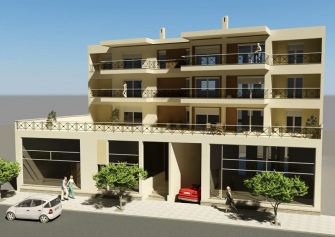 4οροφη οικοδομή 6 κατοικιων και 3 καταστημάτων με υπόγειο χώρο στάθμευσης οχημάτων, υψηλών προδιαγραφών.