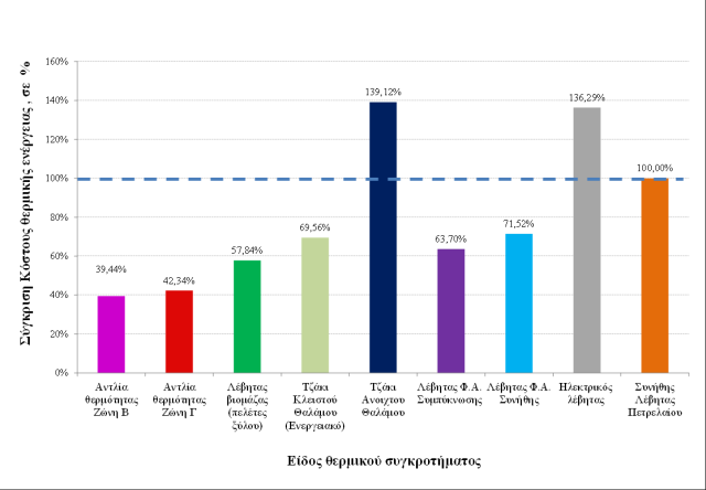 Διασύγκριση του συνολικού κόστους της θερμικής ενέργειας διαφότων ειδών θερμικών συγκροτημάτων με ένα συνήθη λέβητα πετρελαίου.