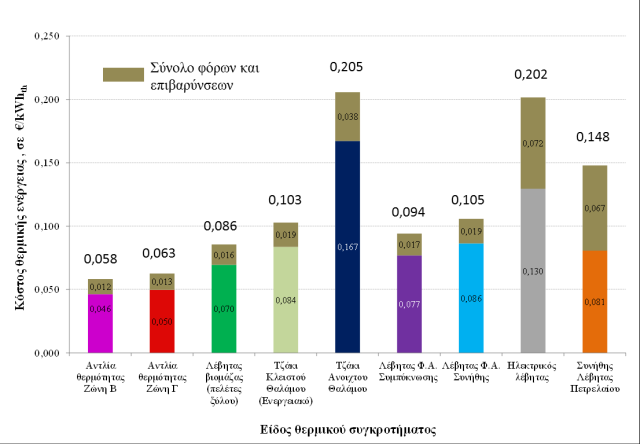 Κόστος ωφέλιμης θερμικής ενέργειας ανά είδος θερμικού συγκροτήματος