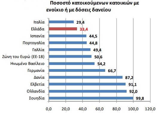 Για το υπόλοιπο 67% τα νοικοκυριά δεν επιβαρύνονται ούτε από ενοίκιο, ούτε από δόσεις στεγαστικού δανείου.