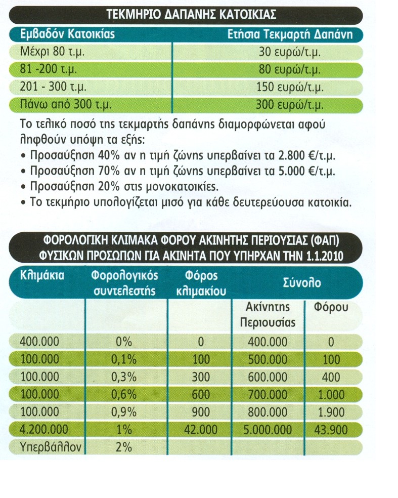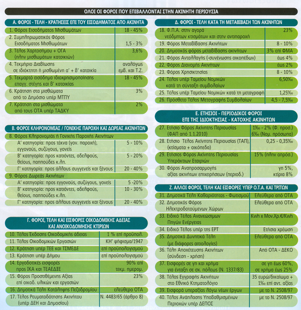Παρακάτω παραθέτουμε πίνακες που επιβάλλονται στην ακίνητη περιουσία.